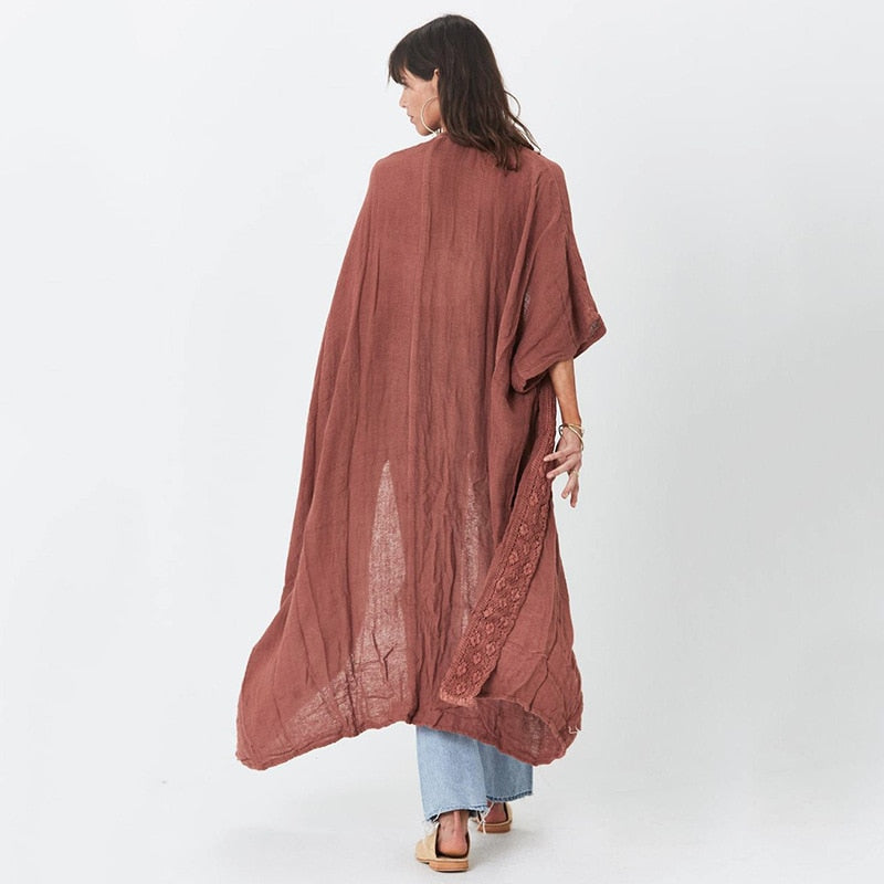 2021 Beach Cover Ups Bamboo Fabric Women's Bathing Suit Oversized Beach Dress New Lace Cardigan Loose Sunscreen Swimwears