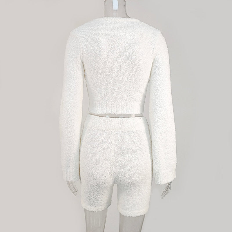 Casual Two Piece Sets Flare Sleeve Sweatshirts 2 Piece Shorts Set Sexy Fluffy Suits Lounge Set